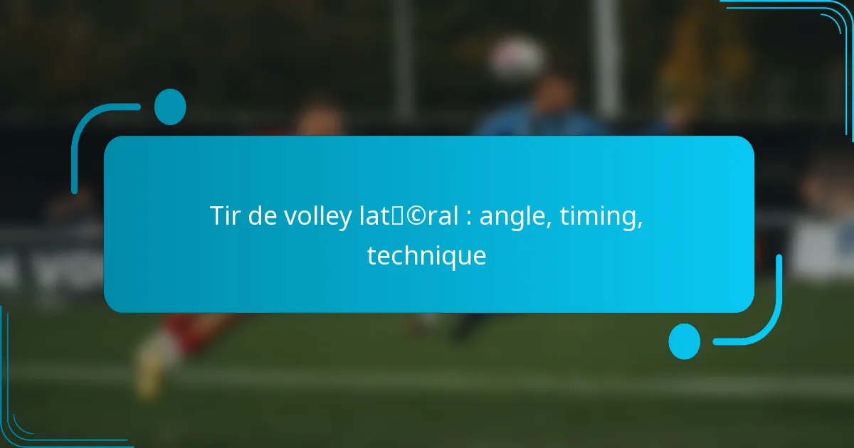 Un tir en vol latéral est une technique dans des sports comme le football et le tennis où le joueur frappe la balle alors qu’elle est dans les airs, généralement sur le côté. Ce tir est utilisé pour délivrer des frappes puissantes et précises, menant souvent à des opportunités de marquer ou des retours efficaces.